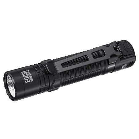 Découvrez la lampe torche EDC31, une solution compacte et ultra-puissante. Équipée de 9 LEDs NiteLab Uhi20, et dotée d'une intensité lumineuse de 3500 lumens, pour une portée de 380 mètres, elle est idéale pour une utilisation quotidienne ou dans les situations extrêmes. Cette lampe torche se distingue particulièrement par ses différentes fonctionnalités :