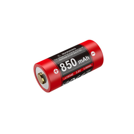 Batterie Lithium-Ion 16340 3.6V 850 mAh rechargeable via sa prise micro-USB (cordon de chargement non fourni)