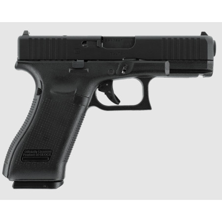 Le Glock 45 Gen5 MOS est une réplique airsoft sous licence, alimentée au gaz, qui combine la culasse compacte du G19 avec la carcasse pleine taille du G17. Il est équipé du système MOS pour l'installation de viseurs à point rouge grâce aux plaques adaptatrices (Docter, Trijicon, C-More, Leupold) disponibles séparément.